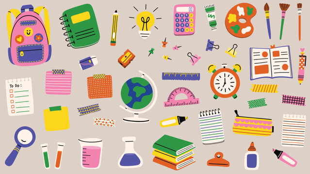 Vibrant assortment of colorful stationery supplies in a modern store setting. concept of office supplies, school materials, creative organization