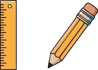 Yellow pencil and ruler lying on white surface, tools for measuring and drawing, simple and clean educational concept.