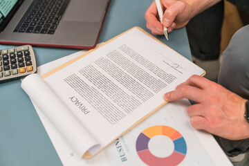 Businessman signing privacy contract while sitting at home