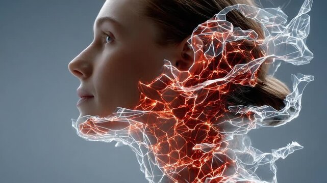 Digital Portrait of Brain and Mind: An evocative digital portrait of a woman, interwoven with a stunning visualization of the brain, its neural networks, and the intangible concept of the mind.