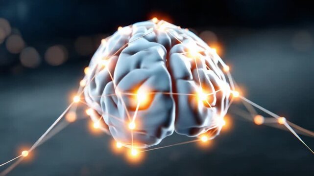 Brain's Neural Network: A captivating display of a human brain, intricately interwoven with glowing neural connections, representing the core of intelligence and cognitive processes.