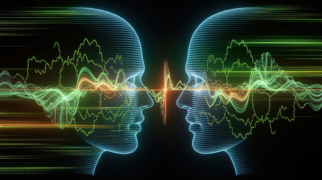 legal intellectual property trial concept. Silhouetted figures against a blue background with grid pattern.