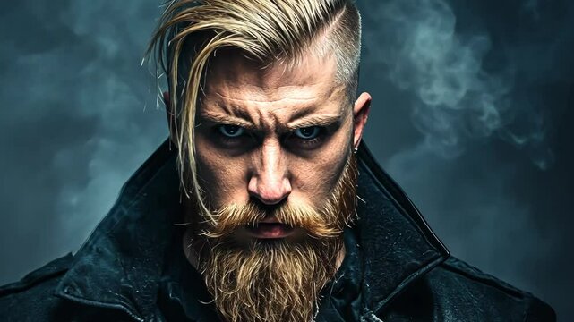 A close-up portrait of a man with intense eyes and glasses, surrounded by dark fur, conveying a mysterious and contemplative mood, Ideal for themes of introspection, character studies