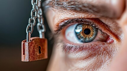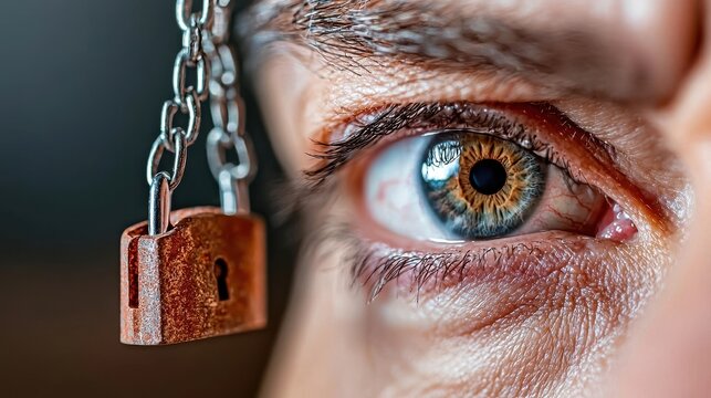 Mesmerizing close up shot of a human eye with a piercing intense gaze  The image captures the intricate details of the iris pupil and eyelid creating an enigmatic and captivating impression