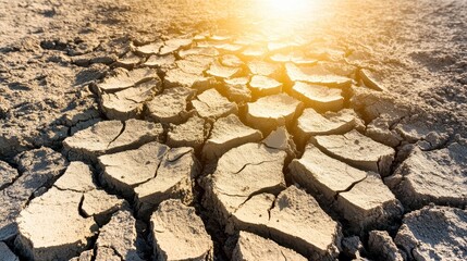 Cracked earth exposed to intense sunlight under a bright sky