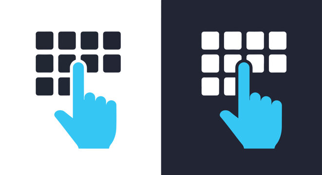 Hand touching a digital screen interface - Vector icon symbol for website - Icon vector - Blue icon vector - Line and glyph solid icon and logo template