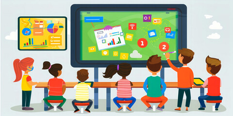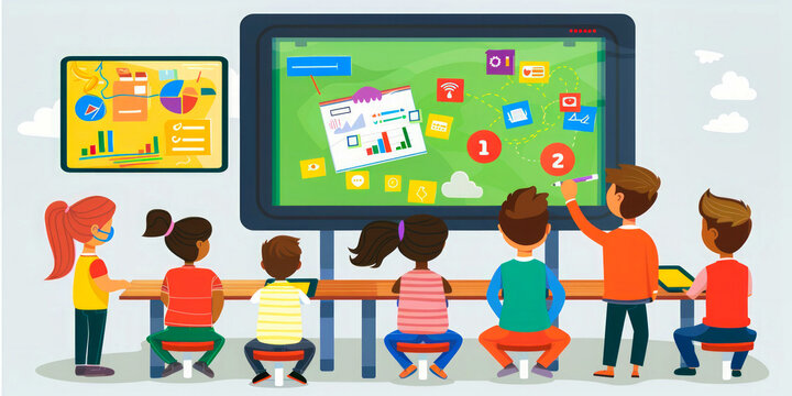 Focused businessman drawing a light bulb and other icons on an interactive whiteboard, symbolizing innovation and idea generation in a modern office environment