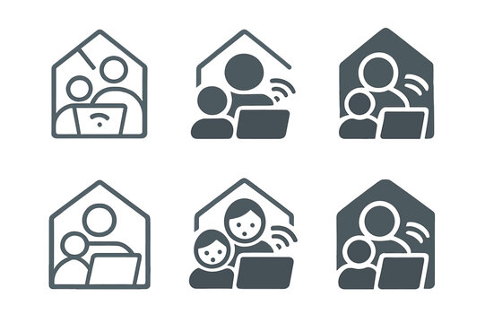 Interactive Entertainment Icons. Interactive home entertainment experiences. Icon set. Set Logo of interactive home entertainment experiences: connected family