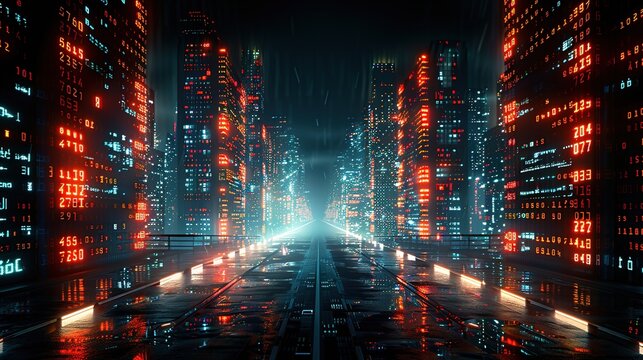 Futuristic Virtual Reality Scene with Blue-Haired Avatar Engaging with Interactive Interfaces in a High-Tech Digital Environment