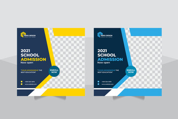 School Admission social media post, promotional discount Back to school admission social media post banner template Design.Back to School admission by social media Instagram, Facebook post kit