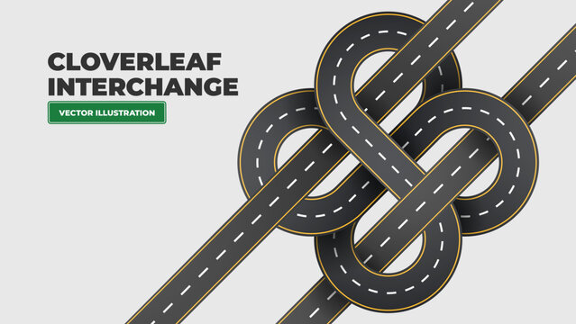 Top View of Cloverleaf Interchange Roadway with Realistic Highway Loops and Lanes. Great for Traffic, Transport, and Infrastructure Projects. Vector Illustration.