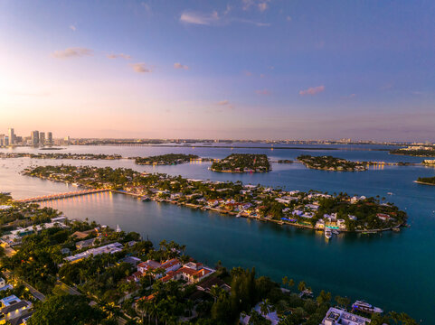 Aerial view of Miami Beach with Palm and Hibiscus Island, Florida, United States.