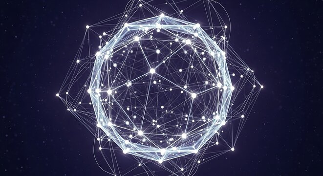 Abstract digital network visualization glowing nodes interconnected lines dark background