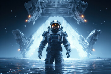 intergalactic traveler exploring unknown planet, surrounded by strange and foreign flora and fauna, created with generative ai