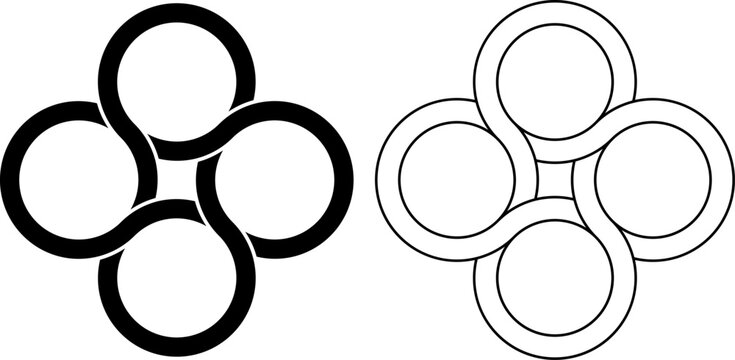 Interlocking black outline circles representing connection unity and partnership simple graphic design