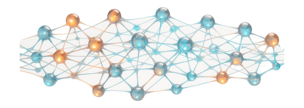 Dynamic mesh of interconnected nodes, each pulsating with a rhythmic, internal light.