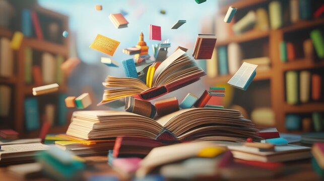 Books imagination, 3d illustration.the concept of international literacy day, copy space. World book day.