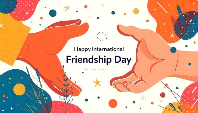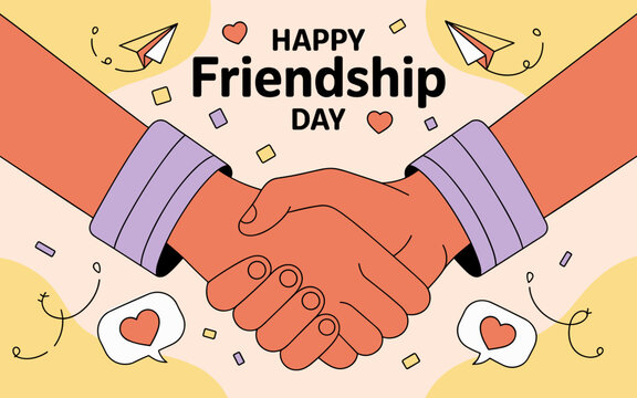 Cute and colorful illustration of Happy Friendship day 2025 banner with minimalistic elements