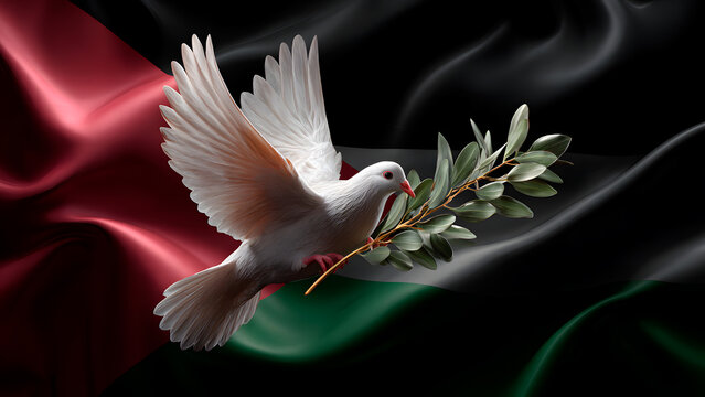 Dove of peace with an olive branch above the Palestinian flag. International Day of Solidarity with the Palestinian People.