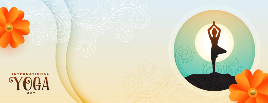 international yoga day banner woman in surya namaskar posture
