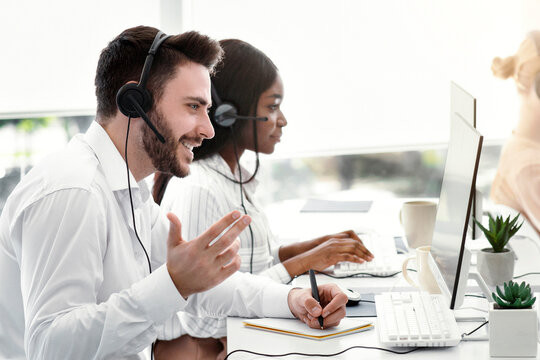 Smiling customer service representative with headset assistance