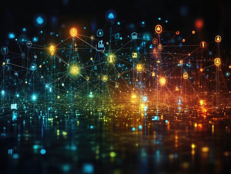 Digital security icons illustrating online protection and data safety in a modern technology context