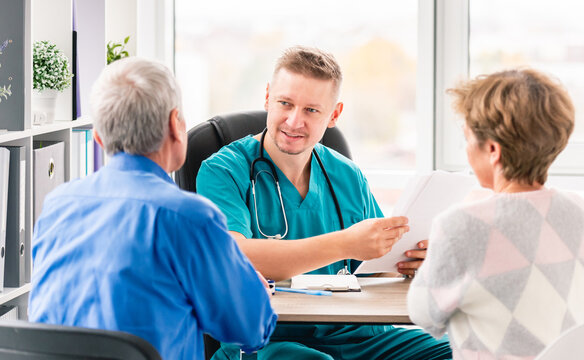 Mature couple at doctor cabinet during appointment