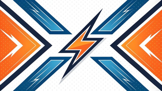 Dynamic energy clashing in a vibrant, intersecting arrow design with bold orange and blue hues on a white dotted background.