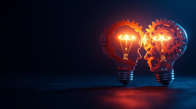 Two Light Bulbs with Gears Representing Collaboration and Innovation - Two light bulbs with gears intertwined symbolize collaboration, innovation, creativity, and teamwork.  They represent the power o