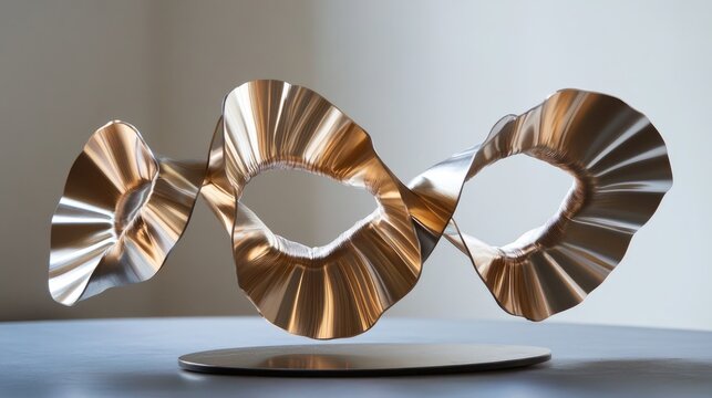 Abstract Metallic Sculpture Representing DNA Helix Contemporary Art Piece Symbolizing Innovation and Scientific Inspiration