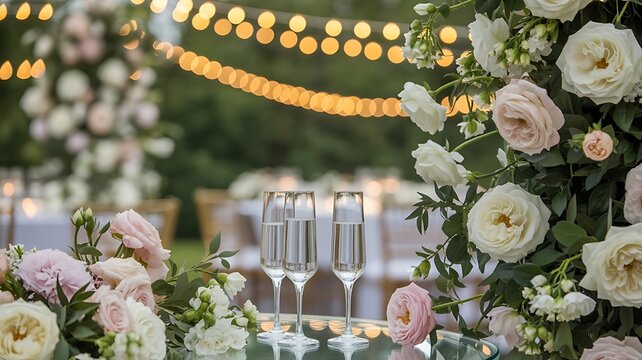 Elegant outdoor family dinner with fairy lights and candles, creating a warm atmosphere for a special celebration
