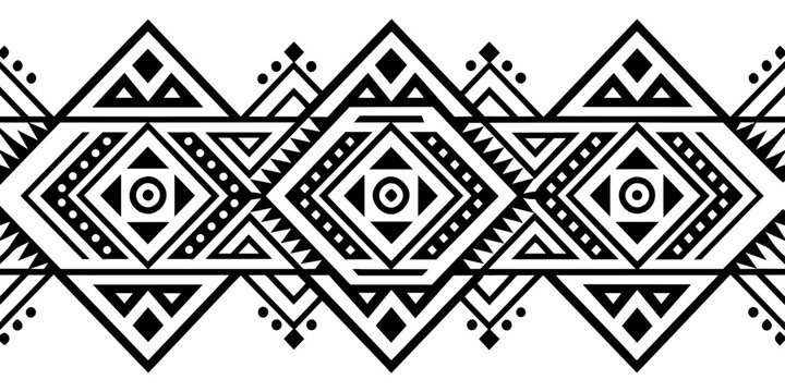 Intricate and detailed traditional african pattern design with geometric shapes in black and white, reflecting the rich cultural ornament, heritage, and ethnic background of african textile art