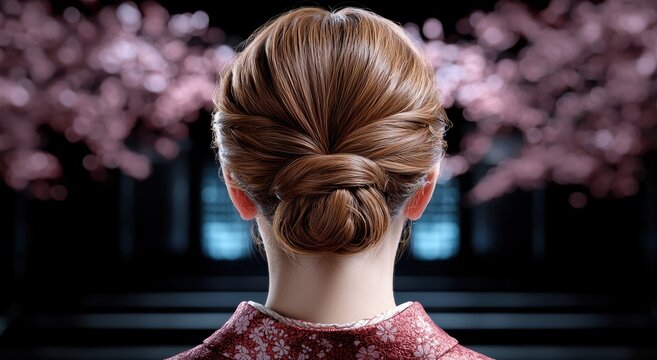 Elegant close-up of a Greek braid hairstyle from the back, showcasing intricate weaving and stylish twists in a modern hair salon environment.