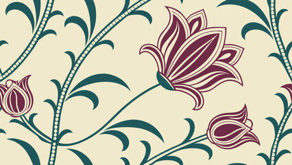 Indian ethnic pattern with elegant floral and leaf motifs in seamless decorative border design creating beautiful traditional style