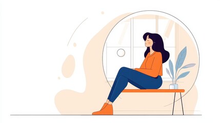 An introverted woman finds solace in her bubble, surrounded by the simplicity of a bright, airy room.