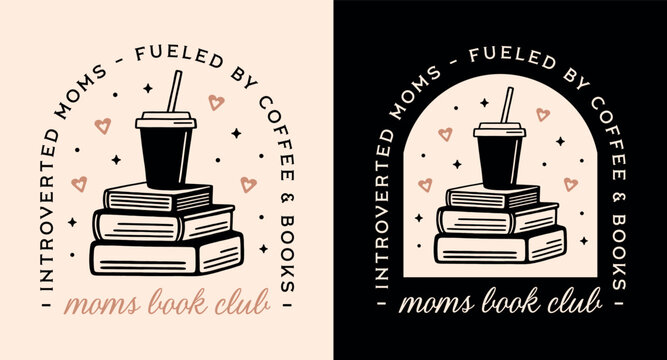 Moms book club introverted coffee lover mama badge funny quotes fueled by caffeine shirt design. Preppy retro vintage black aesthetic text vector for mother's day gifts printable card sticker poster.