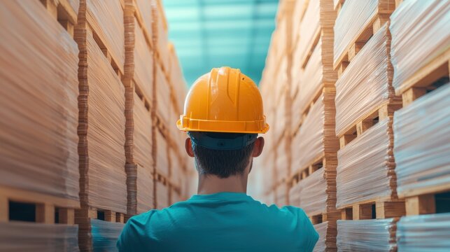 Worker touring warehouse amount shelves to commemorate labor efforts