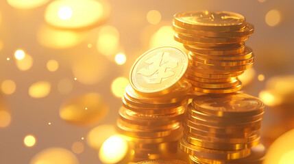 Stacks of shining gold coins glimmer in soft light, symbolizing wealth, prosperity, and investment opportunities in finance. Glimmer. Illustration