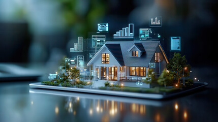 virtual real estate investment strategy session showcasing model house with digital overlays