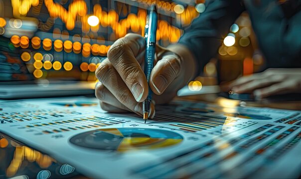 Hand developing financial presentation slide, sketching charts and graphs ideal for business reports, investment analysis, and corporate strategy sessions