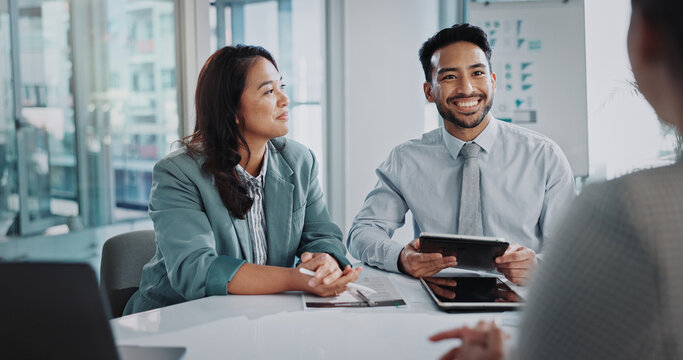 Confident, leadership and power by a business woman doing a presentation on a board to a group in a conference room. Happy woman explaining an idea or marketing strategy for a startup to investors