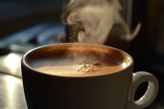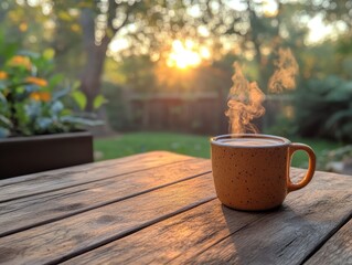 Golden Hour Coffee: Aromatic coffee steams in the warm glow of sunrise, promising a cozy and invigorating start to the day.