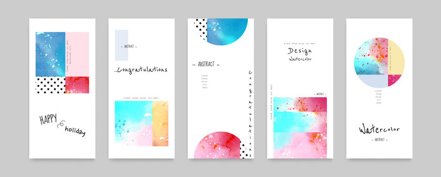 Set of Hand-painted Watercolor Card Layouts and Notes