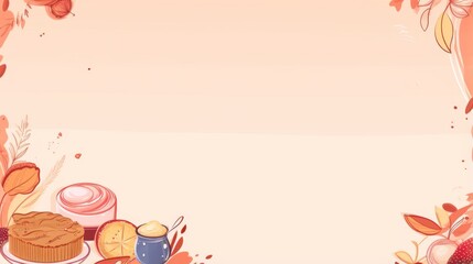 A pastel-themed illustration showcasing a variety of sweet desserts and a charming tea set, arranged on a light background, encapsulating the essence of a delightful tea party.