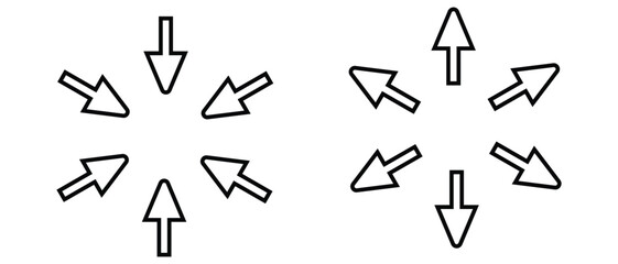 Arrows outward and arrow inward icon symbol vector illustration.