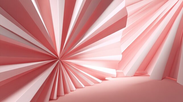 Abstract pink pleated forms create a radial, inward-curving, three-dimensional design