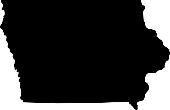 Contour map of the state of Iowa, USA. Vector graphic illustration on a transparent background with black region borders