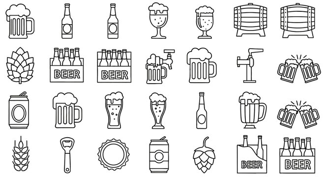 Collection of beer line icons, beer, beer related vector illustration in outline design. Alcohol beverages, brewery, bar