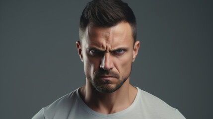 Angry Man Looking at the Camera Isolated on the Minimalist Background