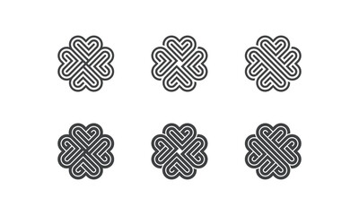 Set Of Love Clover Knot Heart Logo Concept sign icon symbol Element Design. Boutique, Health Care, Luxury Logotype. Vector illustration logo template